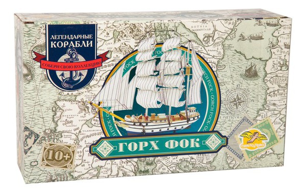 В набор входят: деревянные детали корабля, паруса, флажки, снасти, баночка клея, краски. Рекомендуется для детей от 10 лет.