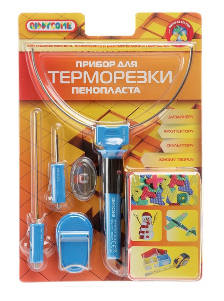 Терморезак для создания разнообразных фигур из пенопласта. При контакте с горячей насадкой пенопласт слегка плавится, что позволяет легко резать его и создавать нужные профили. Помимо насадки-нити в набор также входят две дополнительные насадки с разными наконечниками. Данные насадки можно использовать для создания различных видов разрезов и узоров. Прибор для фигурной резки развивает фантазию и творческие способности, подготавливает ребенка к школьным урокам труда, а также развивает внимательность при работе с электроинструментами. Удобная подставка, входящая в комплект, сделает работу с прибором максимально комфортной и безопасной.