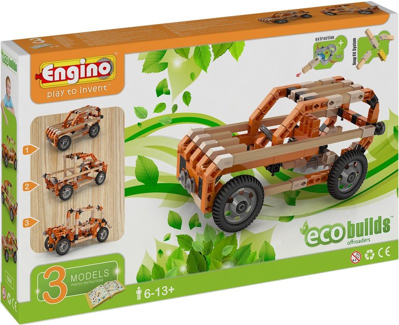 ECO BUILDS - новая экологическая серия инновационных конструкторов Engino, в которой отлично сочетаются деревянные и пластмассовые элементы. Деревянные детали легко соединяются с пластиковыми без дополнительных крепежных элементов или клея. Серия Eco builds объединяет в себе традиционное тепло дерева и технологические возможности передовой пластиковой инженерии.