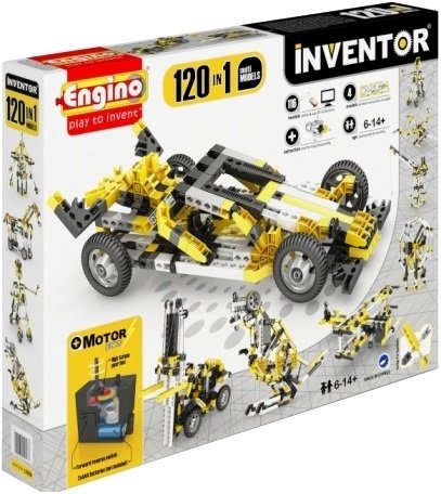 Конструктор ENGINO "120 моделей с мотором", из серии INVENTOR, предназначен для юных изобретателей от 6 лет и старше. Из деталей набора, с помощью пошаговой инструкции, можно собрать по очереди 120 различных моделей, которые можно будет привести в движение с помощью входящего в состав набора электромотора.